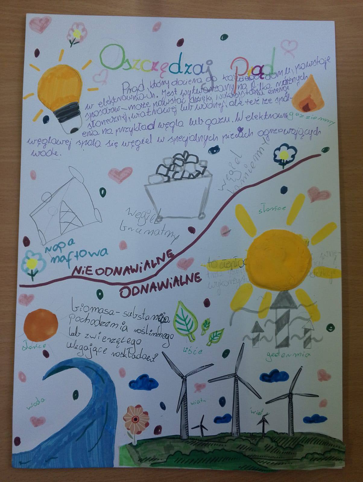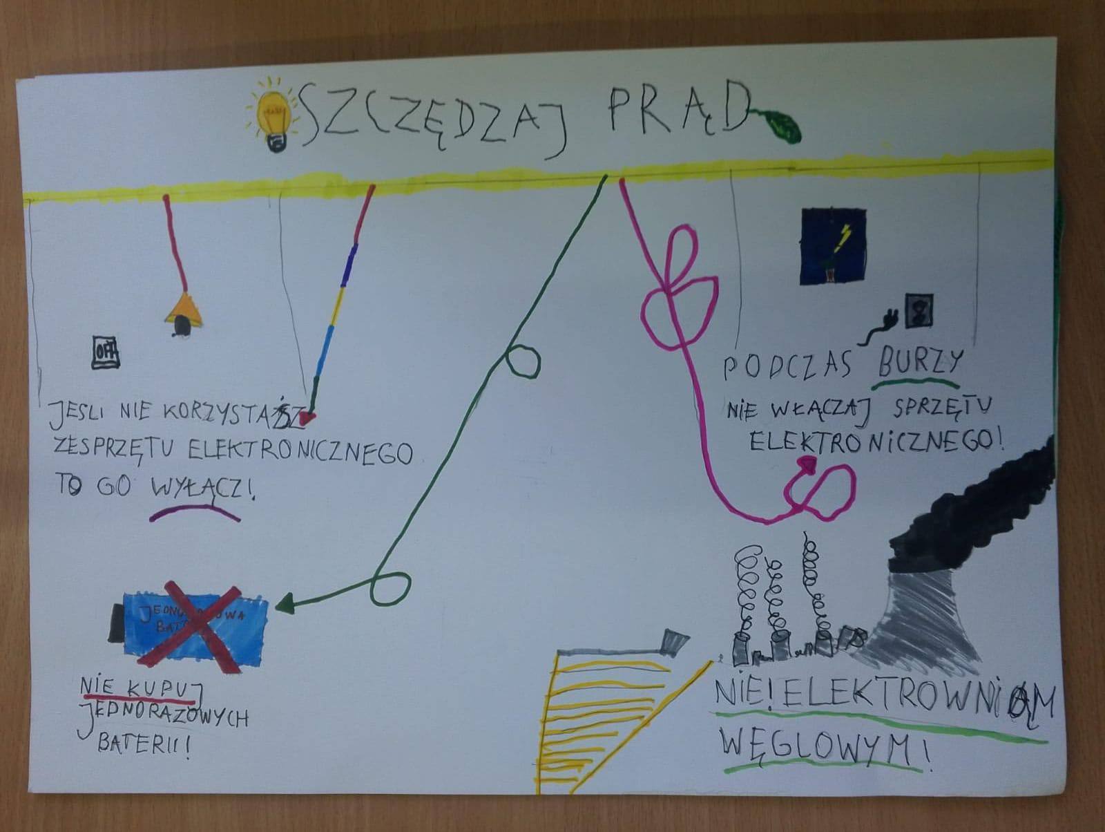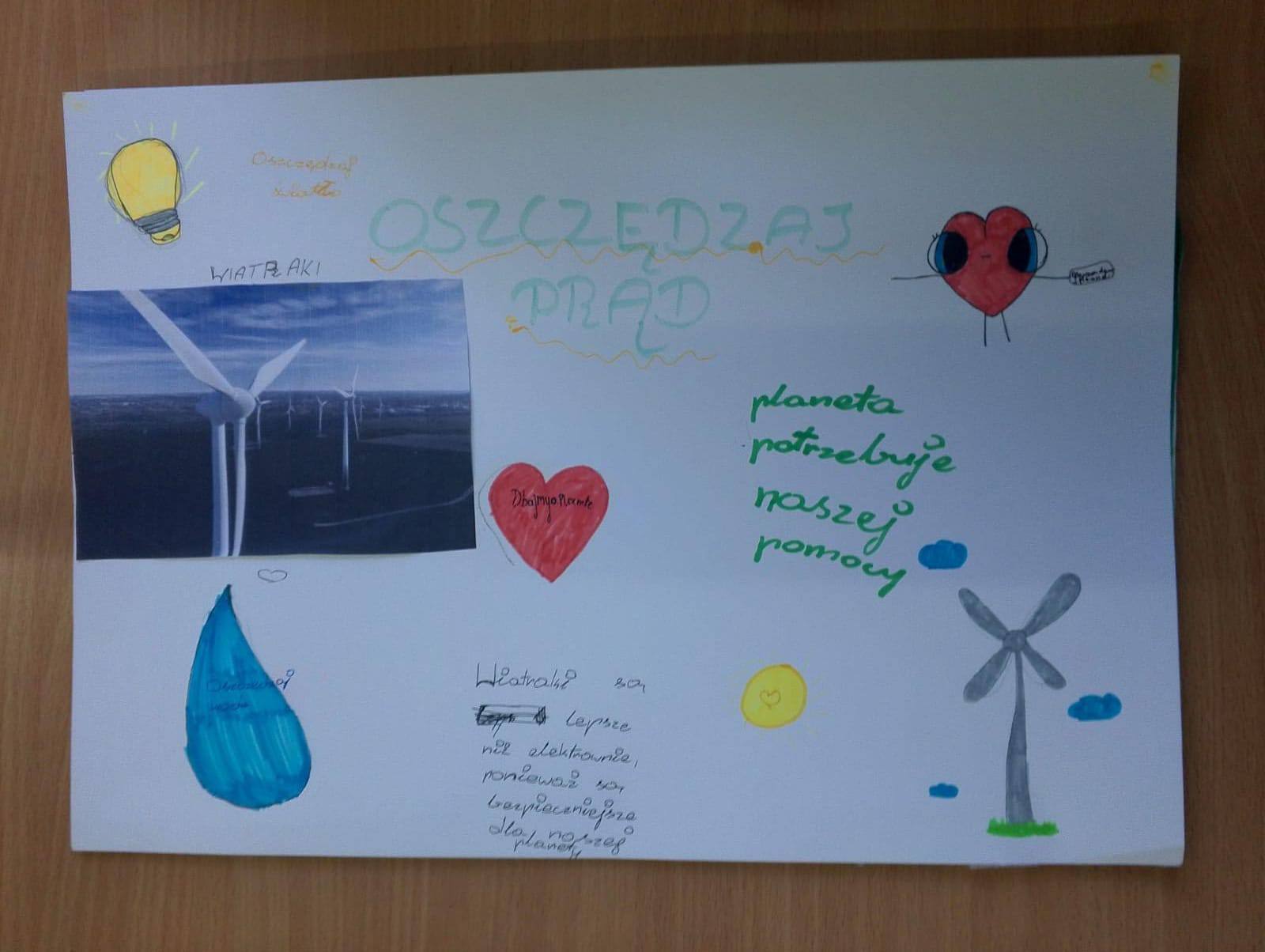 Efektem końcowym zajęć było przygotowanie plakatów promujących ekologiczne postawy i racjonalne korzystanie z energii.