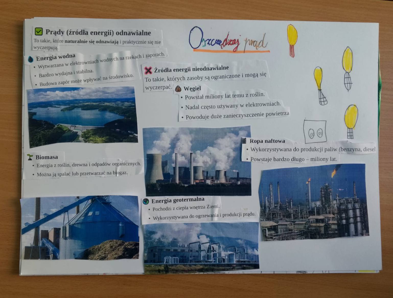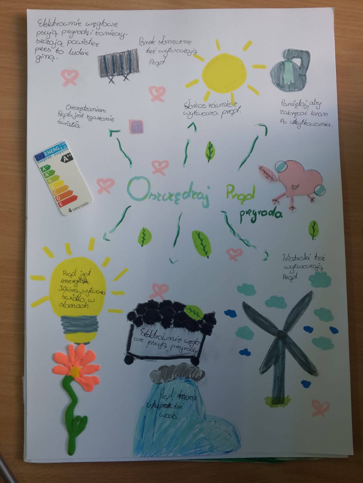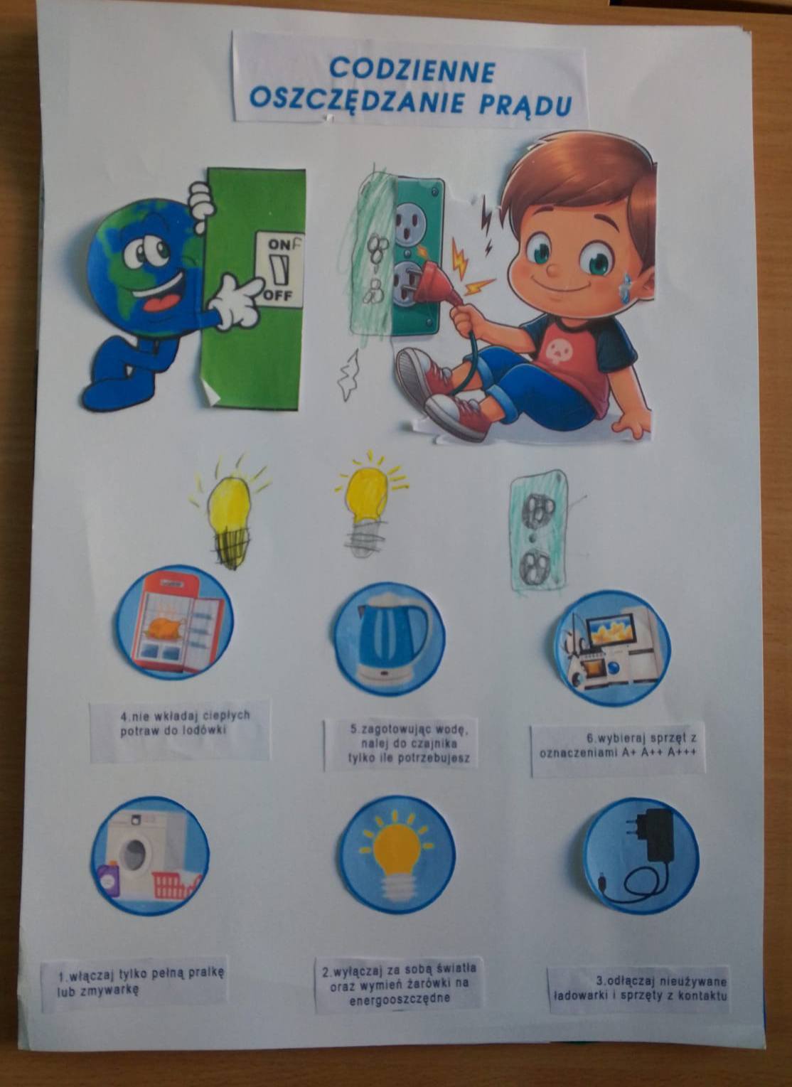 Efektem końcowym zajęć było przygotowanie plakatów promujących ekologiczne postawy i racjonalne korzystanie z energii.